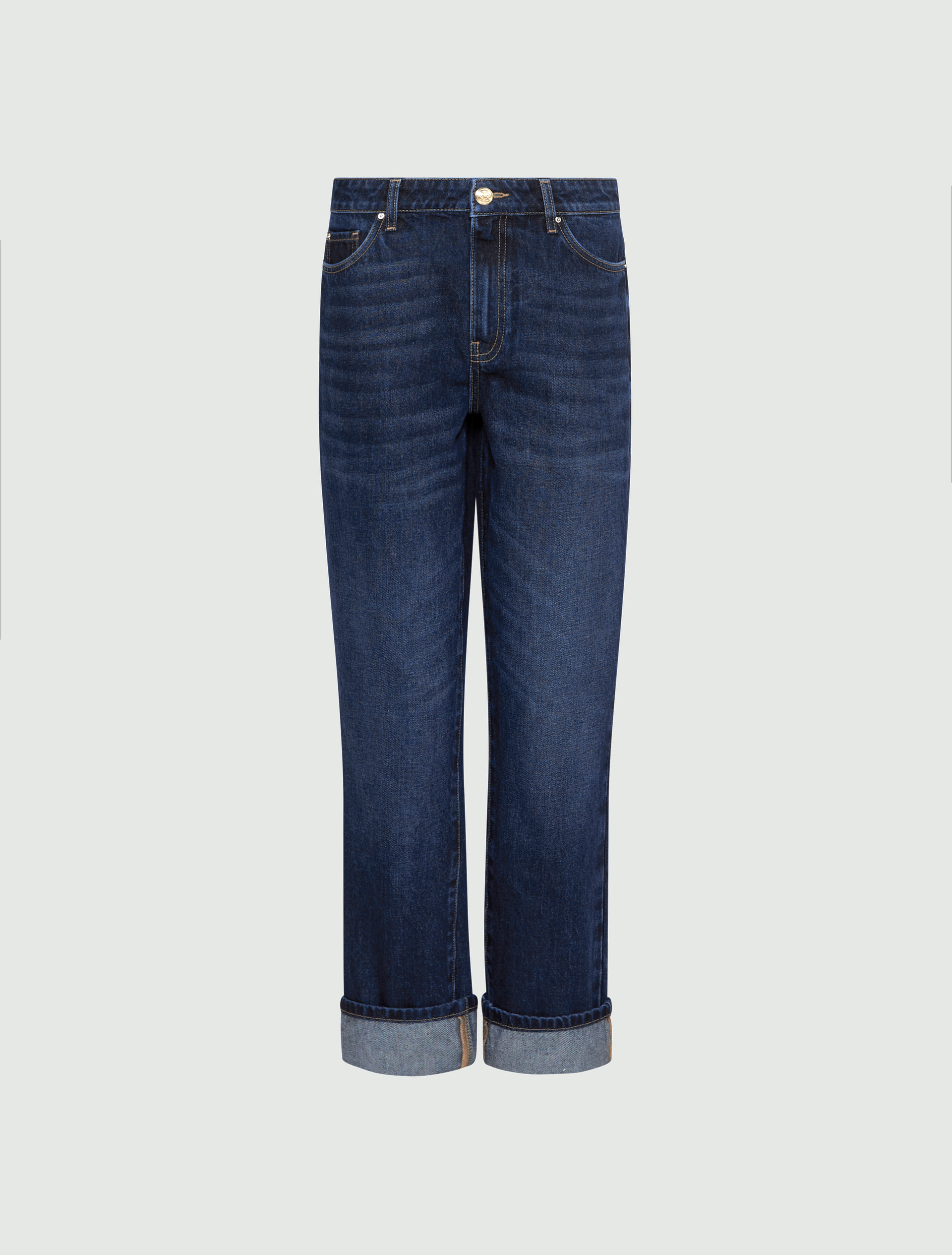 - Nieten und Knopf in hellgoldfarbener Ausführung
